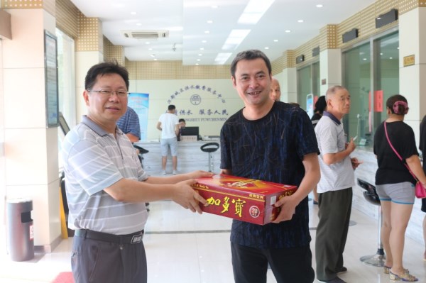 入伏以來,氣溫持續(xù)升高,為切實(shí)做好夏季防暑降溫工作,保障一線勞動(dòng)者的身體健康,確保供水生產(chǎn)的正常運(yùn)行,7月26日上午,在總經(jīng)理繆朝暉的帶領(lǐng)下,公司領(lǐng)導(dǎo)帶著防暑降溫用品,深入供水生產(chǎn)、服務(wù)一線、施工現(xiàn)場(chǎng)和鄉(xiāng)鎮(zhèn)供水所進(jìn)行夏季高溫慰問,把公司的關(guān)心、關(guān)懷送到了員工中間,使廣大員工在炎炎夏日中感受到了絲絲清涼。在慰問現(xiàn)場(chǎng),公司領(lǐng)導(dǎo)對(duì)高溫期間仍然堅(jiān)守崗位的廣大員工表示慰問和感謝,同時(shí)叮囑做好防暑降溫工作,動(dòng)員大家戰(zhàn)高溫、保生產(chǎn),全力組織好夏季高峰供水工作,確保安全度夏。