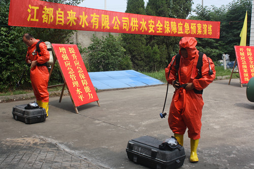 為進一步提高安全防范水平,保障夏季高峰供水,6月24日,區(qū)自來水公司根據(jù)安全生產(chǎn)月活動安排,在第二水廠舉行了液氯泄漏及突發(fā)性水源微污染事件應急預案演練,公司制水生產(chǎn)、機電維修、水質檢測等工種人員參加了演練,區(qū)域供水增壓泵站工作人員進行了全過程學習。區(qū)城建局相關部門負責人進行了現(xiàn)場指導,區(qū)污水處理廠和亨達水務等兄弟單位組織人員現(xiàn)場觀摩。