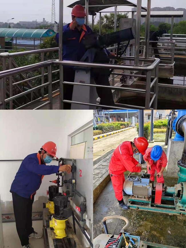 受7月底臺風(fēng)“煙花”的影響,我公司下屬邵伯油田污水廠因緊鄰馬蕩河支流,且廠區(qū)地勢較低,長時間的暴雨沖擊及河水倒灌導(dǎo)致廠內(nèi)積水嚴重,又受突如其來的新冠疫情影響,因疫情管控,廠區(qū)設(shè)備修繕工作滯后,暫未恢復(fù)正常運行,設(shè)備管理辦公室副主任謝觀遠更是連續(xù)幾夜未合眼,每天奮戰(zhàn)在廠區(qū),嘗試工藝及水質(zhì)調(diào)控,尋求最優(yōu)、最穩(wěn)定、最安全的方法恢復(fù)廠區(qū)生產(chǎn)運行。