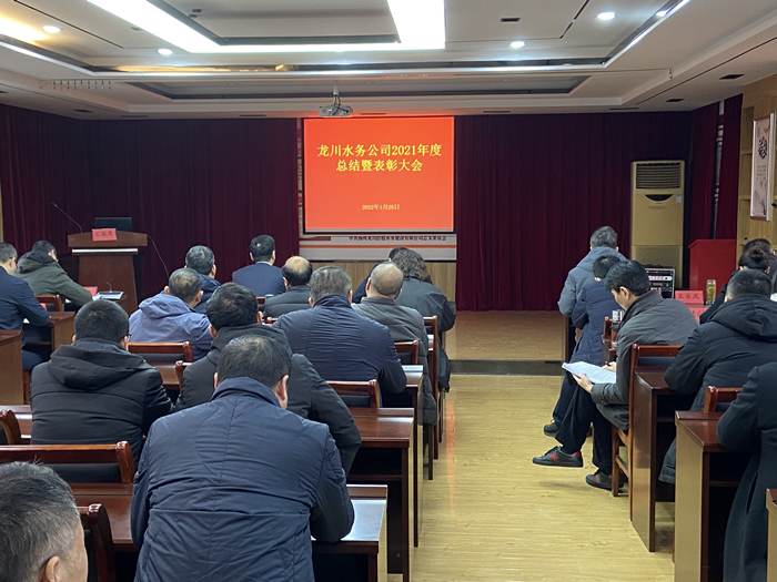2022年1月25日上午,揚州龍川水務公司召開2021年度總結表彰大會,公司全體領導班子成員、受表彰的先進集體和先進個人代表、各單位負責人及部分職工代表共40余人參加了本次會議,會議由常務副總經理劉書政同志主持。