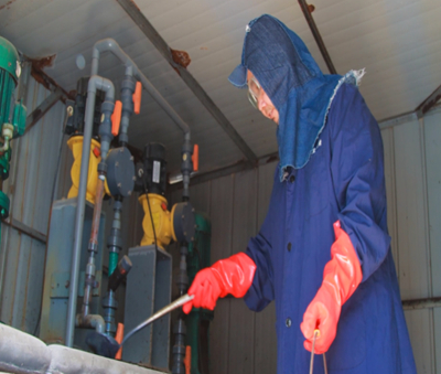 圖3開啟揚州應急轉供水閥門                                                        圖4投加高錳酸鉀