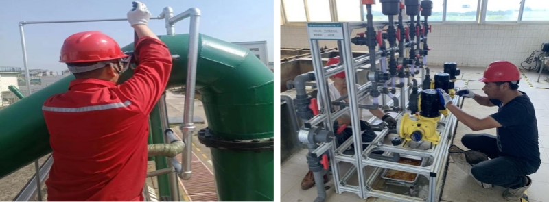 設(shè)施維護(hù)方面,第二、三水廠制水運(yùn)行人員增加供水設(shè)施的巡查頻次,細(xì)致察看設(shè)備的運(yùn)行狀況。機(jī)電維修人員每天按計劃對供水設(shè)施進(jìn)行定期保養(yǎng),做好三級維修保養(yǎng)記錄,保障生產(chǎn)的穩(wěn)定。